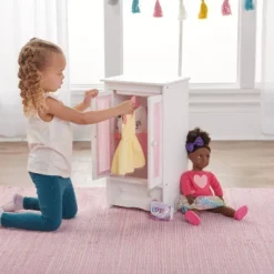 Badger Basket Cabinet Doll Crib With Gingham Bedding And Free Personalization Kit – White/Pink